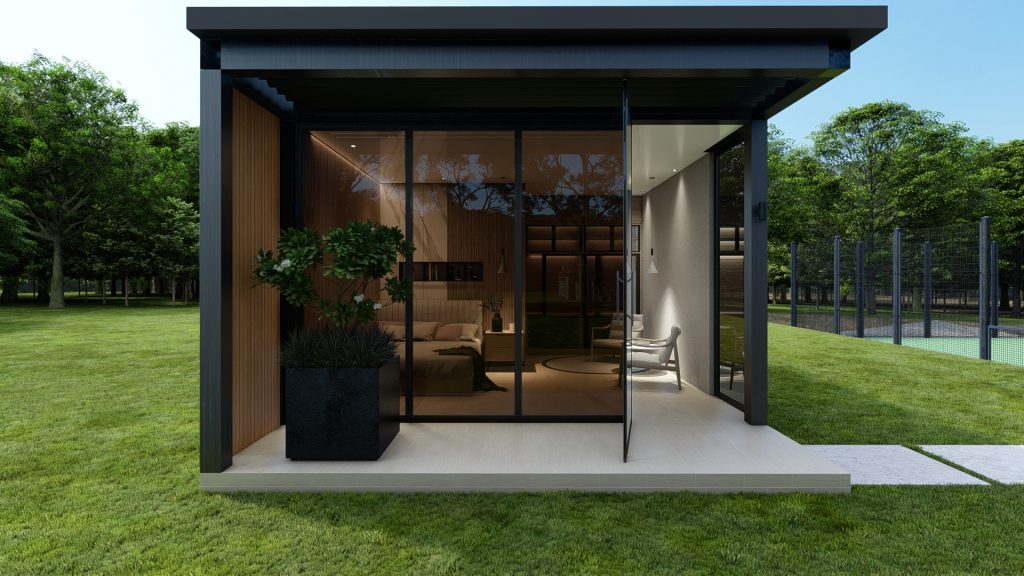 “Lumière d’Azur” – une oasis de sophistication dans le monde des studios de jardin. Cette merveille architecturale, avec sa pièce centrale inondée de lumière grâce à une baie vitrée et une fenêtre accordéon, repousse les frontières de la conception contemporaine. L’extérieur se fond avec l’intérieur, créant une continuité sans faille entre votre espace intime et le monde naturel qui l’entoure.